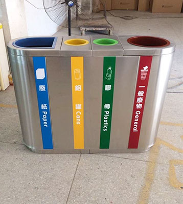 • 產(chǎn)品名稱:商場精品不銹鋼四分類垃圾桶