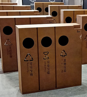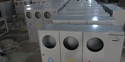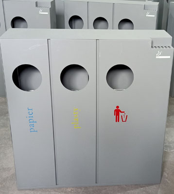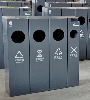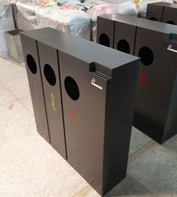 欣方圳酒店室內(nèi)鋼制三四分類(lèi)垃圾桶批量生產(chǎn)圖