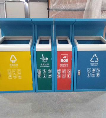 F139戶外鋼板四分類垃圾桶