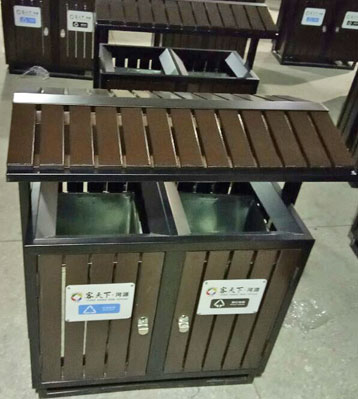 • 產(chǎn)品名稱:屋形鋼木分類垃圾桶